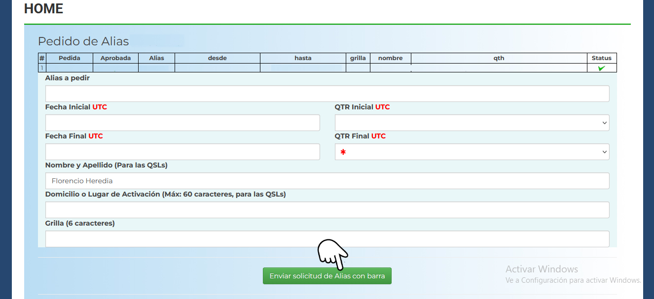 *Si está pidiendo su SD con "barra" es porque transmitirá de un lugar distinto a su QTH base, por lo tanto deberá ser de ese domicilio y de esa grilla.